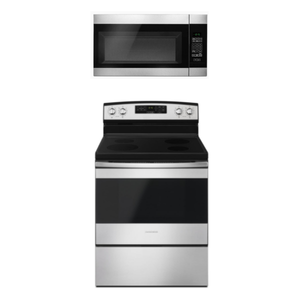 Amana® 2 Piece Stainless Steel Kitchen Package with an over-the-range microwave and free standing electric range.Read More