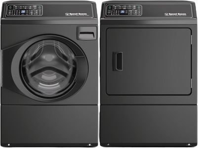 Speed Queen® Matte Black Laundry Pair with a 3.5 Cu. Ft. capacity front load washer and a 7 Cu. Ft. capacity front load electric dryer.Read More